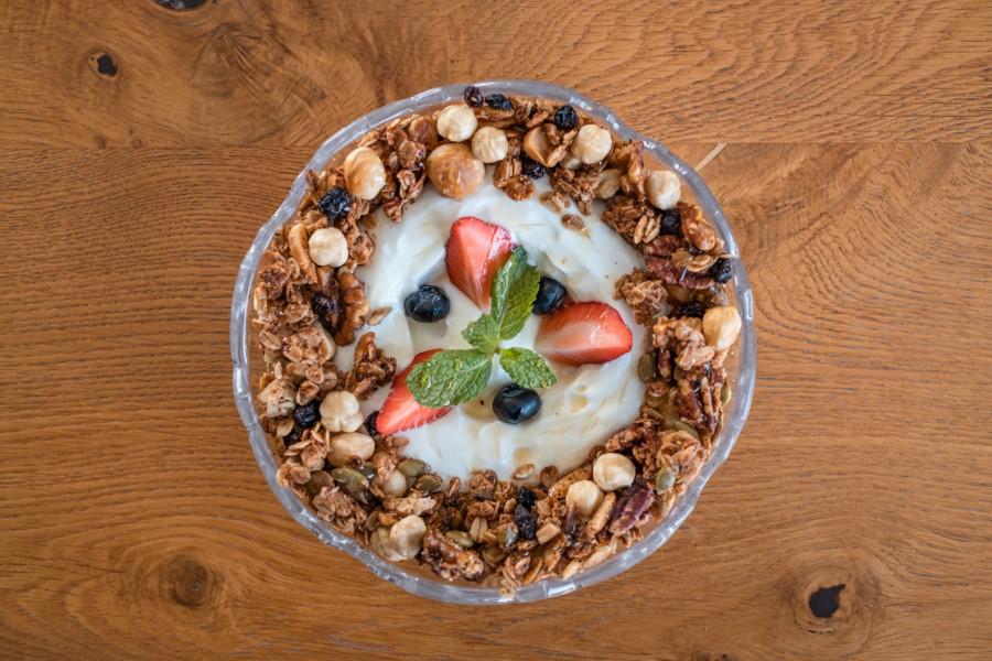 Homemade and healthy! Served with seasonal berries and honey on the side.