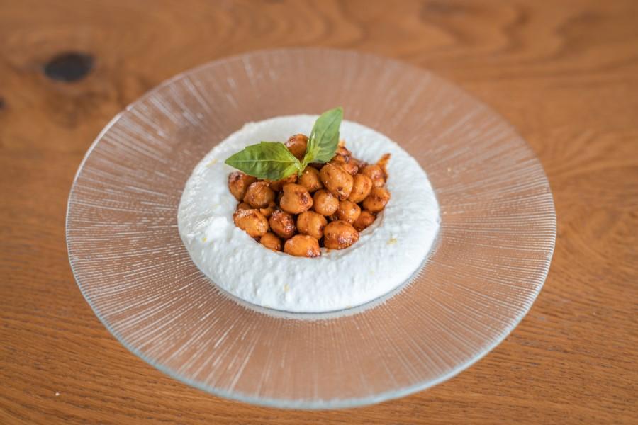 Organic Feta, whipped to a light, cloud-like texture. Topped with crispy, smoked, paprika chickpeas.