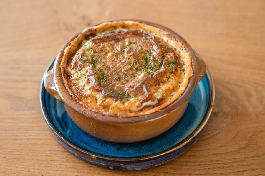Layered with potatoes, aubergine, minced meat and delicious cheesy béchamel.