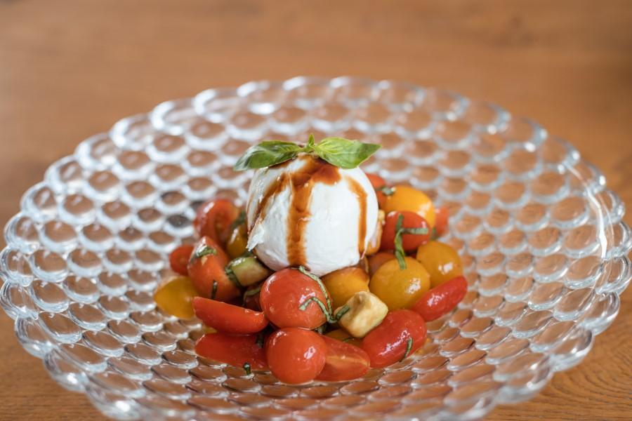 Mixed cherry tomatoes, Mozzarella cheese, avocado and fresh basil.